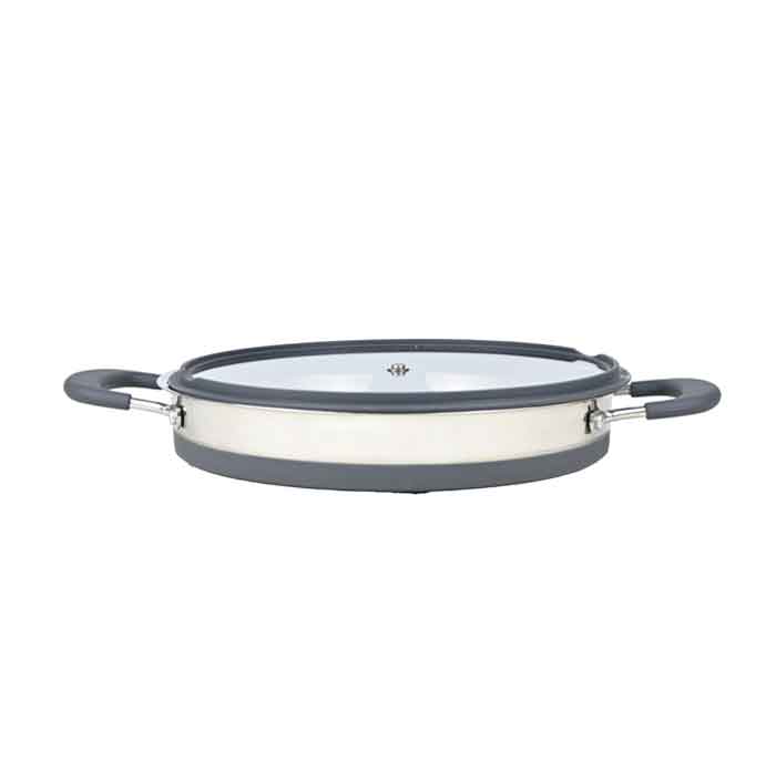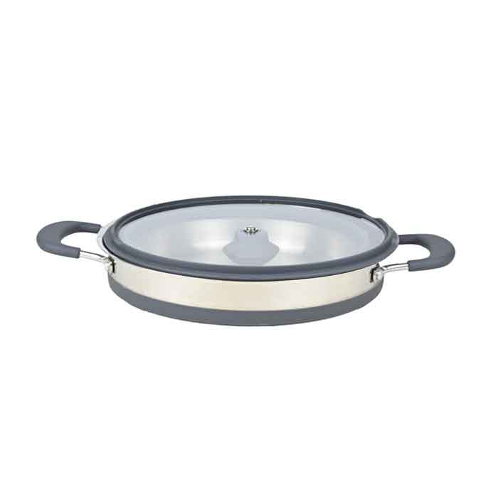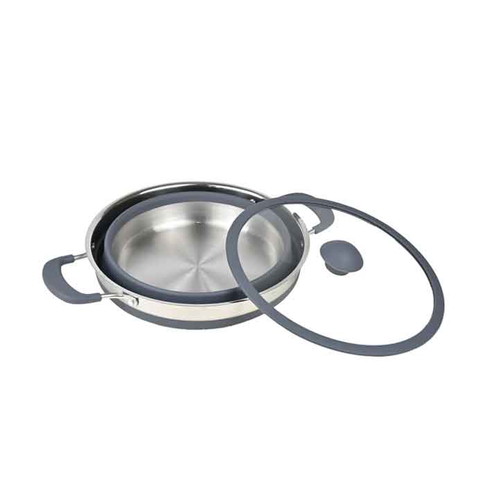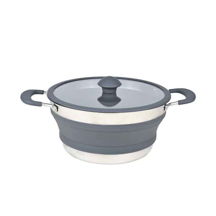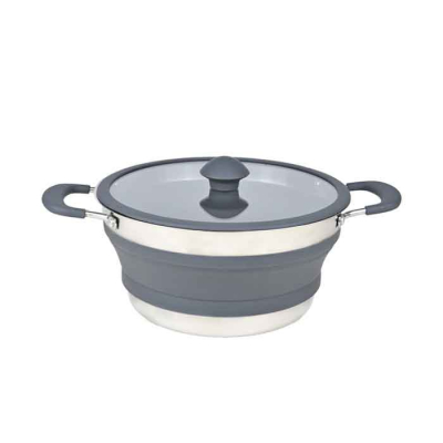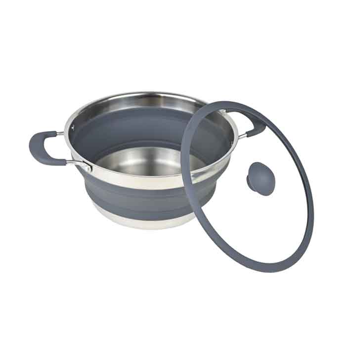 Praktisk hopfällbar gryta med en kapacitet på 3 liter, perfekt för dig som vill spara plats i köket eller på resan. Grytan är tillverkad i rostfritt stål och silikon och levereras med glaslock. Alla material är godkända för livsmedel. Den kompakta designen gör den enkel att förvara när den inte används. Idealisk för camping, båtliv eller små kök.