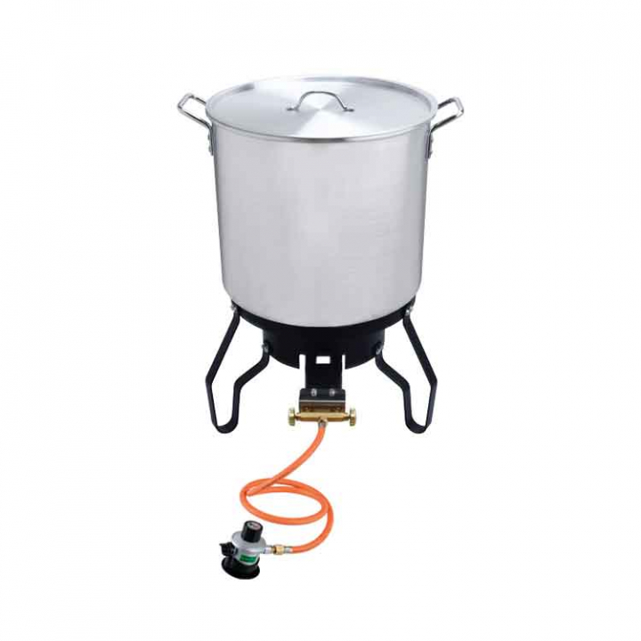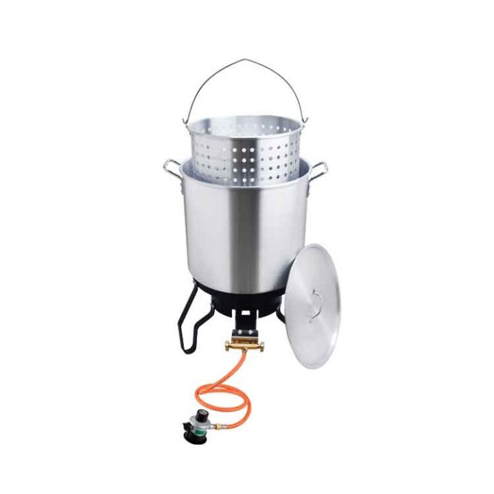 Detta extra stora krabbkokarset på 52 liter är perfekt för att snabbt och effektivt tillaga stora mängder krabba, hummer och kräftor. Setet inkluderar en högtrycksgasbrännare med justerbar effekt, vilket säkerställer att vattnet kokar snabbt.