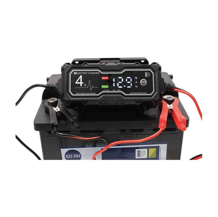 Med funktioner för batteriunderhåll, laddning och reparation kan du säkerställa att ditt batteri håller längre och att spänning och batteristatus visas tydligt på displayen under användning. Den levererar en stabil laddningsström på 4A och är konstruerad för att tåla användning i båtar och garage med damm- och stänkskydd. Lämplig batterikapacitet (Ah): 20-80 Ah
