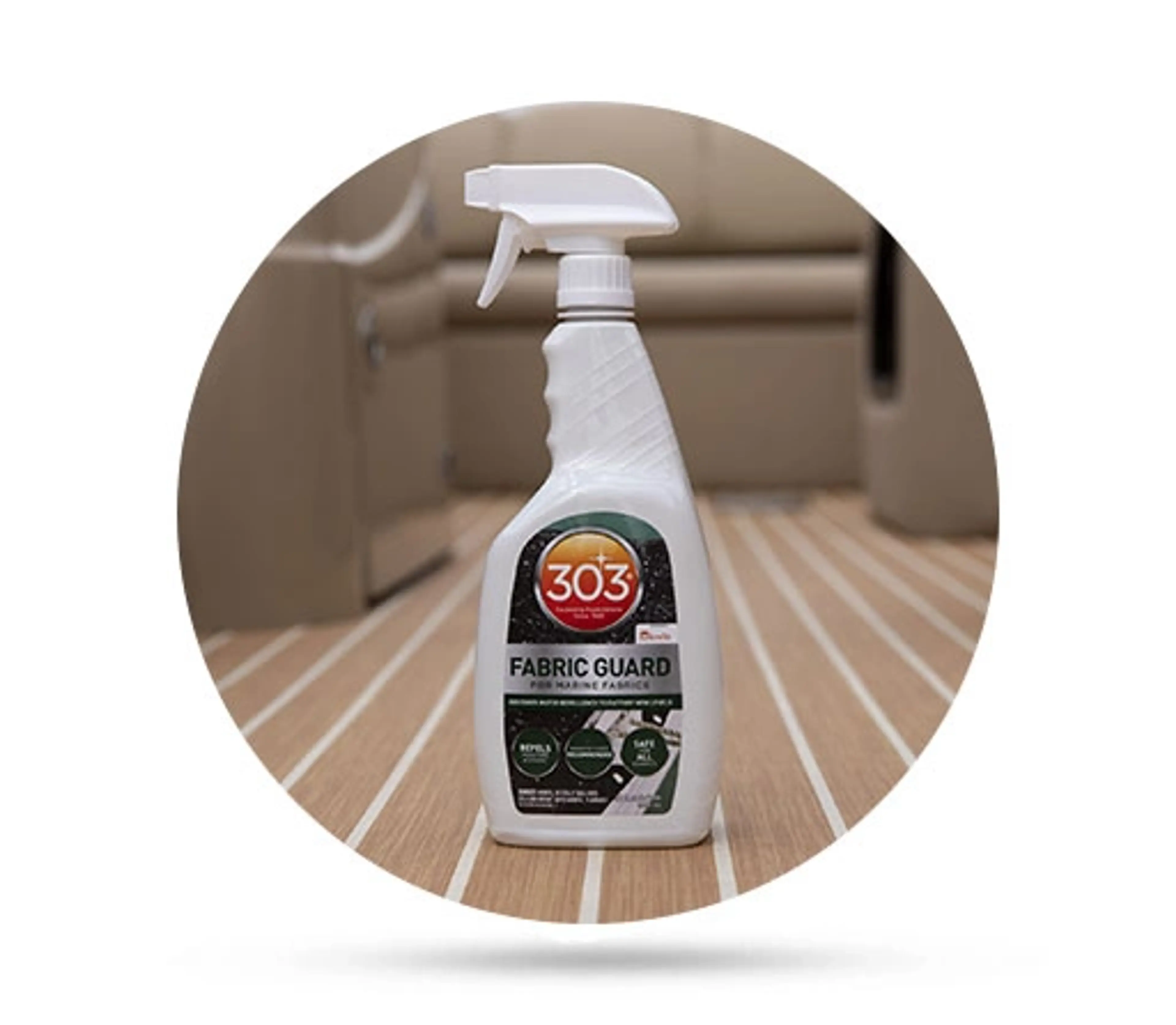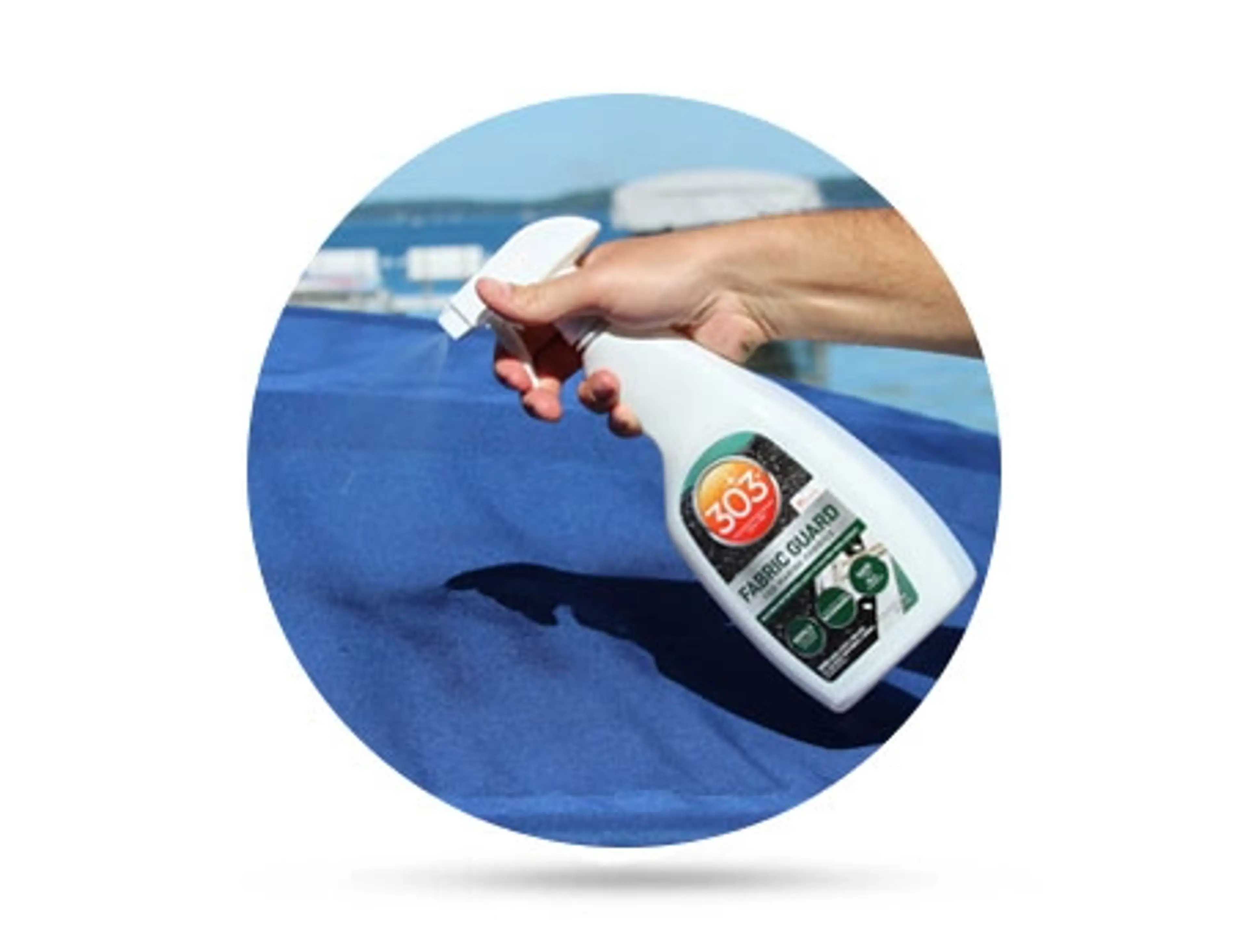 • Använd 303 Marine Multi-Surface innan du applicering av 303 Fabric Guard/ 303 Aerospace Protectant för bästa resultat.