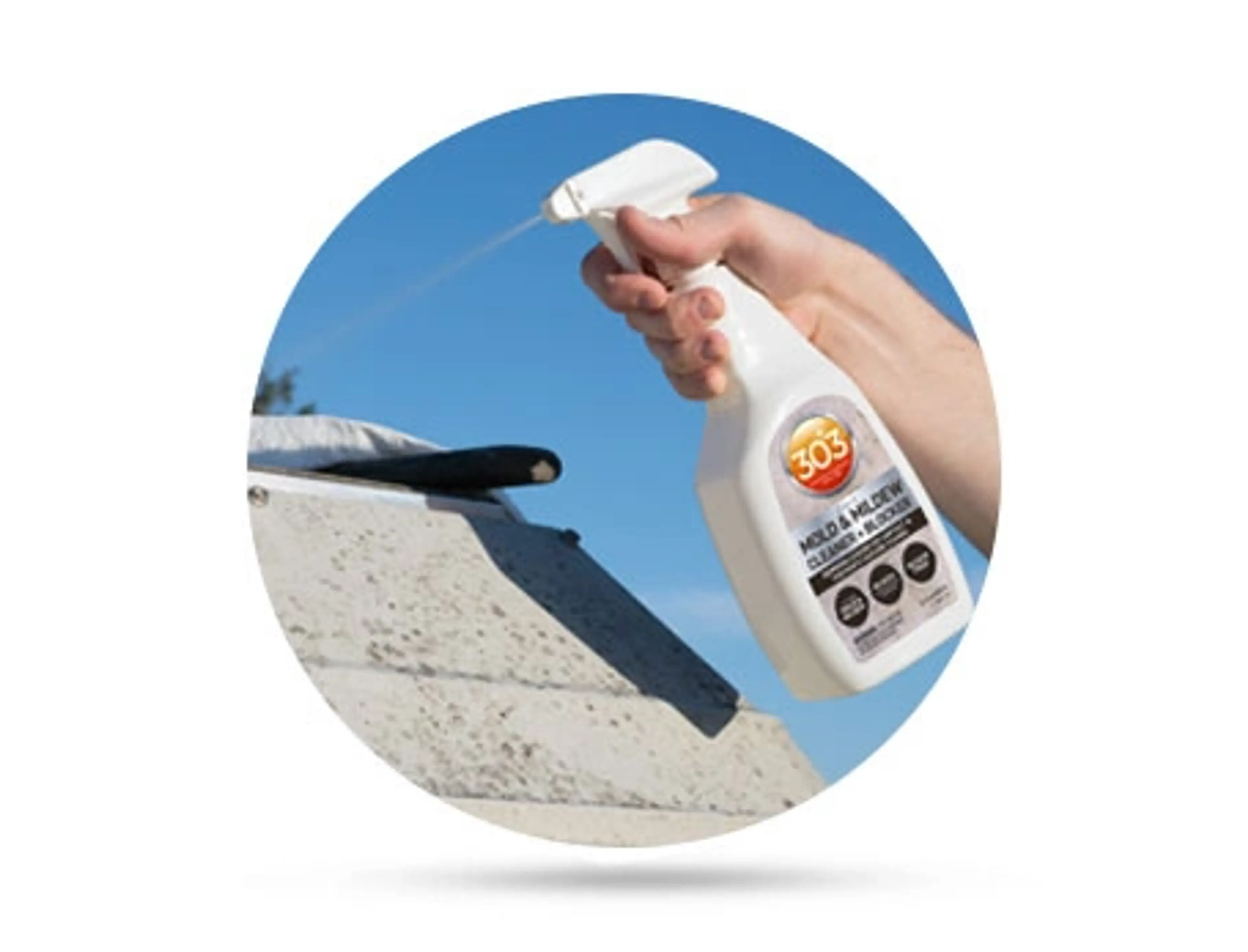 303 Mold & Mildew Cleaner + Blocker är perfekt för markiser och båtkapell