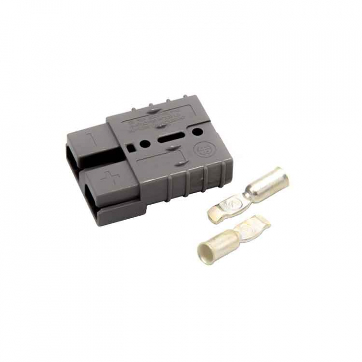 Grå tvåpolig anslutningskontakt för kablage upp till 16mm2. Levereras styckvis, 2st krävs.