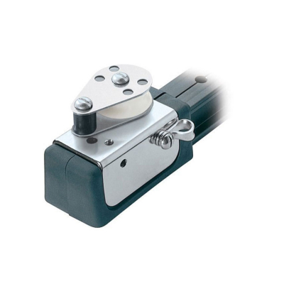 Ändkontroll med block för 32 mm I-skena, avsedd för båtar upp till 40 fot. Skenorna kan böjas i form. Skenorna är tillverkade av svart eloxerad aluminium.
