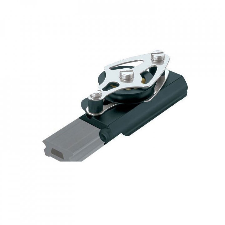 Ändkontroll med block/hundsvott för 30 mm X-skena. Skenan monteras med 8 mm försänkta skruvar med 100 mm mellanrum.