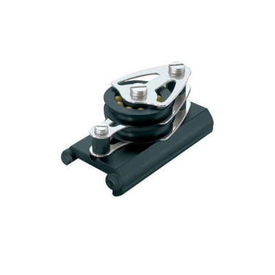 Ändkontroll med dubbla block och hundsvott för 30 mm X-skena. Skenan monteras med 8 mm försänkta skruvar med 100 mm mellanrum.