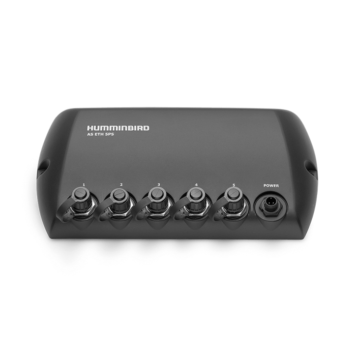 Vattentät 5-portars gigabit switch för Humminbird och Minn Kotas nätverkskompatibla enheter. Koppla samman nätverkskompatibla ekolod med varandra för att dela ekolodsvyer, waypoints, givare, SM3000, CHIRP radar, 360-givare, gånglägesgivare, NMEA 2000, AIS, i-Pilot Link kompatibel trollingmotor från Minn Kota och mycket mer.