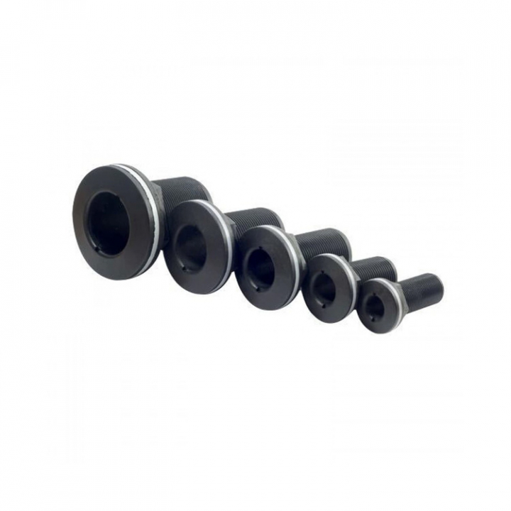 Svarta skrovgenomföringar i flera storlekar, för montering ovanför och under vattenlinjen. TruDesign har ett spännande program med glasfiberförstärkta polymerplastdelar för marint bruk.
