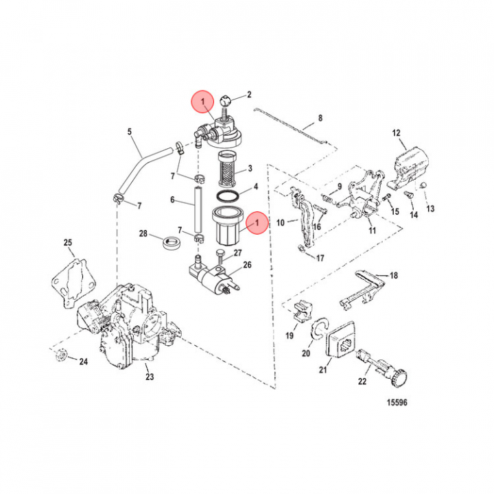 Bränslefiltersats (889527A07) till Mercury 6-25 hk utombordare. Titta i din epc för att säkerställa att delen passar just din motor. - Egenskaper