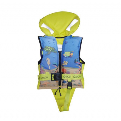 En snygg väst med havsmönster som barnet kommer att älska. Bekvämt och mjukt skum med Solas-godkända reflexer på kragen. Grenband och dragkedja. - Egenskaper