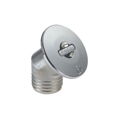 Däckpåfyllning med 45° avloppsstuds. Lock i rostfritt stål AISI 316 och innerdel i kromad mässing. - Egenskaper