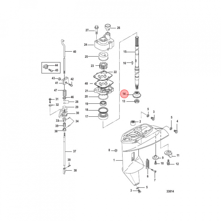 Drev (879147T91) till växelhuset på Mercury 10-20 hk utombordare. Titta i din epc för att säkerställa att delen passar just din motor.