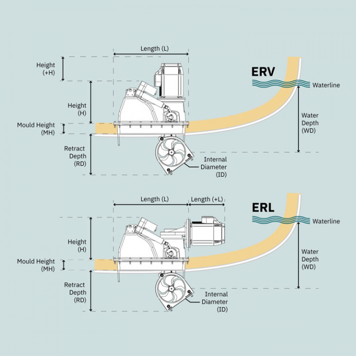 ERV130 är en mycket effektiv, lätt och kompakt nedfellbar bogpropeller, lämplig för båtar mellan 42-62 fot. Den integrerade växelriktaren för steglös hastighetskontroll gör installationen snabb och enkel.