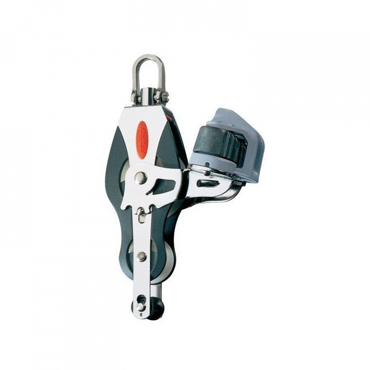 Block med acetalskiva i rostfritt lager, observera att lindragningen genom skotlåset inte får överstiga 125 kg.