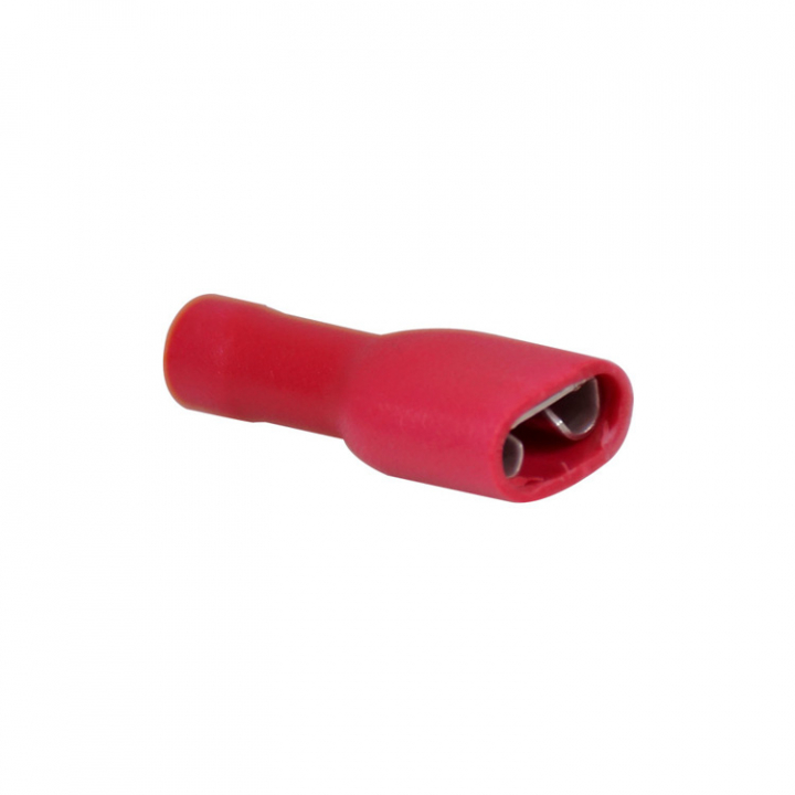 Isolerad flatstiftshylsa i rött som passar till kabelstorlekar 0,5 - 1,5 mm² - Egenskaper