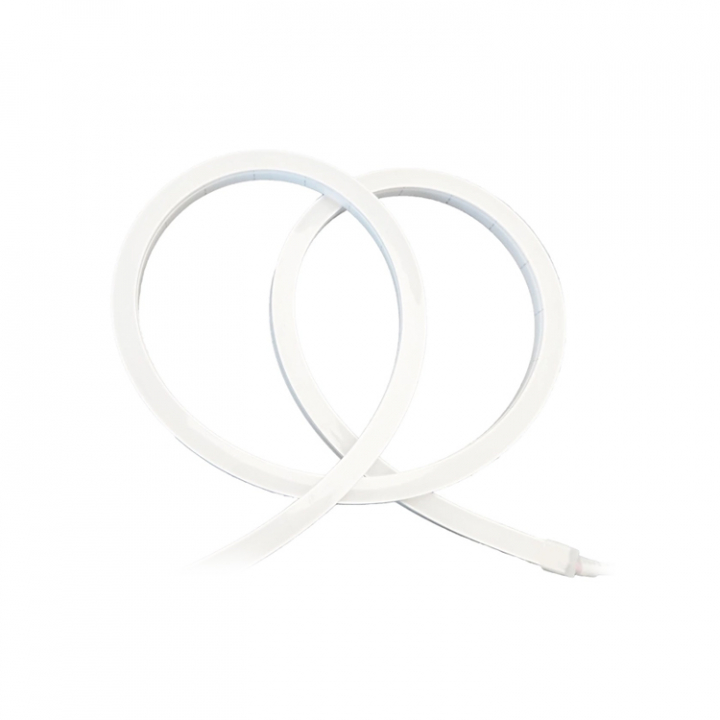 Flexibla LED-ljusband med homogent varmt vitt ljus som kan riktar uppåt och nedåt eller i sidled. Medföljande plastprofiler för montering.