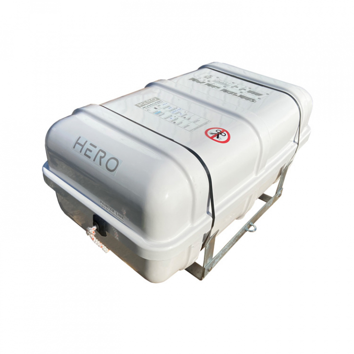 Flottar för användning ombord på kommersiella fartyg. Vakuumförseglad flotte i platt glasfibercontainer. Finns som 6, 8, 10, 12, 16, 20 personers flottar.