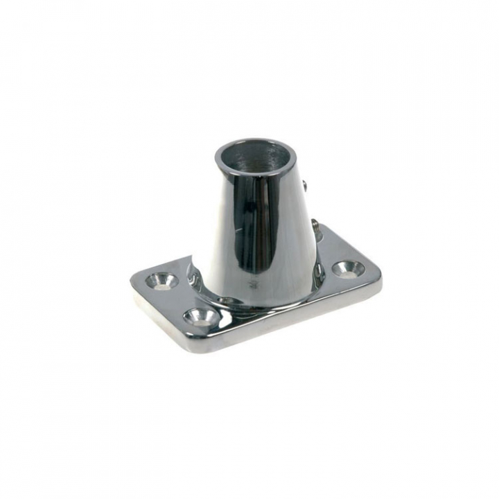 Högglanspolerad fot till mantågsstötta i gjutet rostfritt stål, AISI 316. Foten har en lutning på 7 grader och finns även rätvinklad/rak. Passar alla fötter till mantågsstötta. - Egenskaper