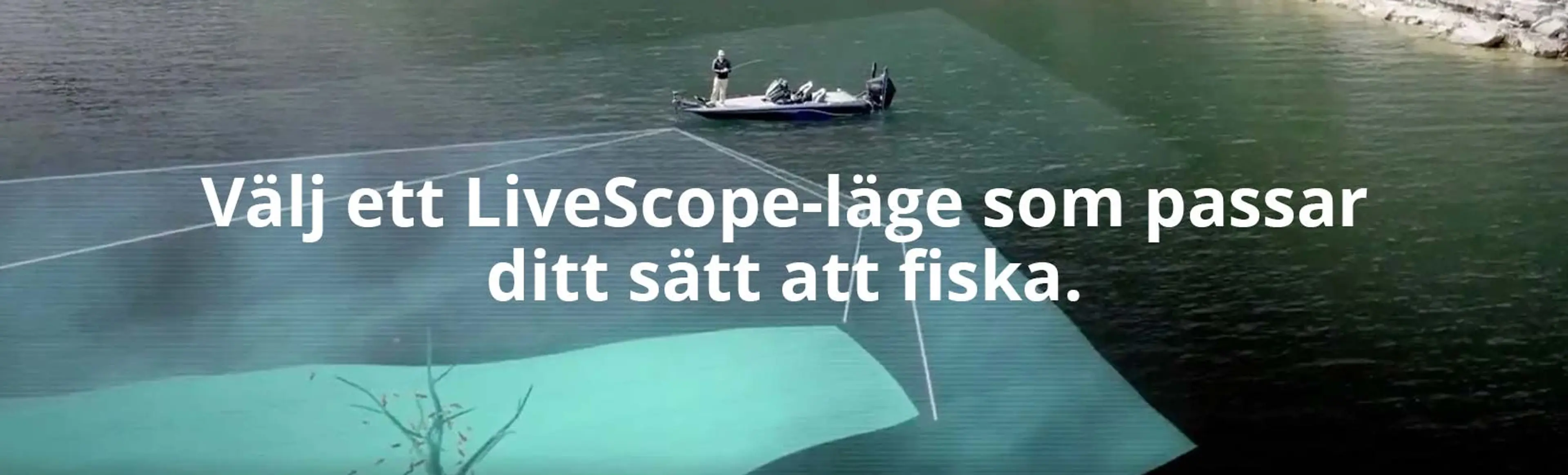 Med LiveScope-ekolodet kan du se under vattnet med fantastiska realtidsbilder. Bilden är så tydlig att du kan se strukturer, fiskstim och till och med hur fisken reagerar på ditt bete. Med bildstabilisering, levande färger, en anpassningsbar vy och tre riktningslägen kan du hitta fisk var den än är.