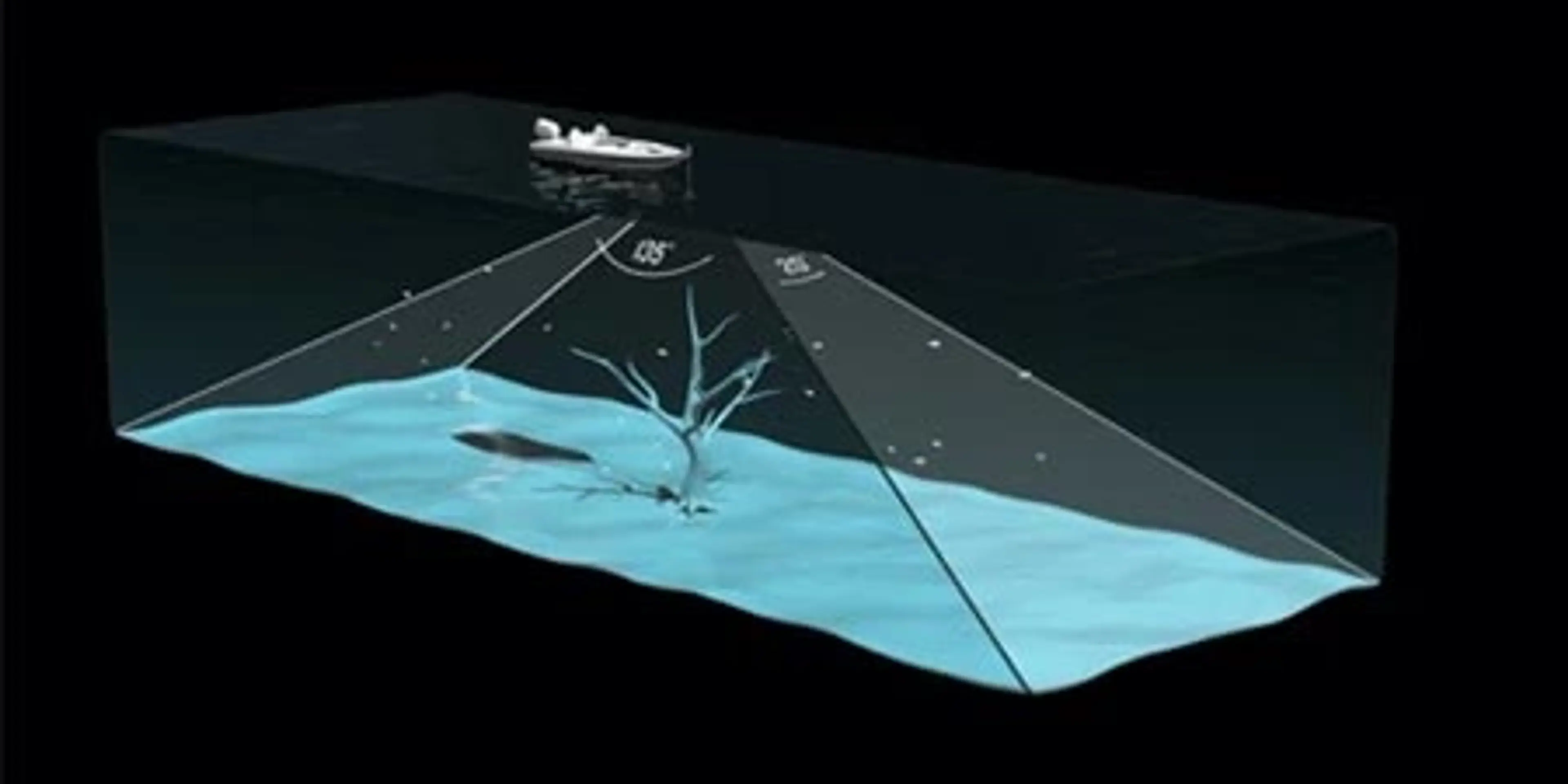 Ekolod i realtid för fiske i öppet vatten med en räckvidd på 152 m (500 fot) i sötvatten och 107 m (350 fot) i saltvatten.