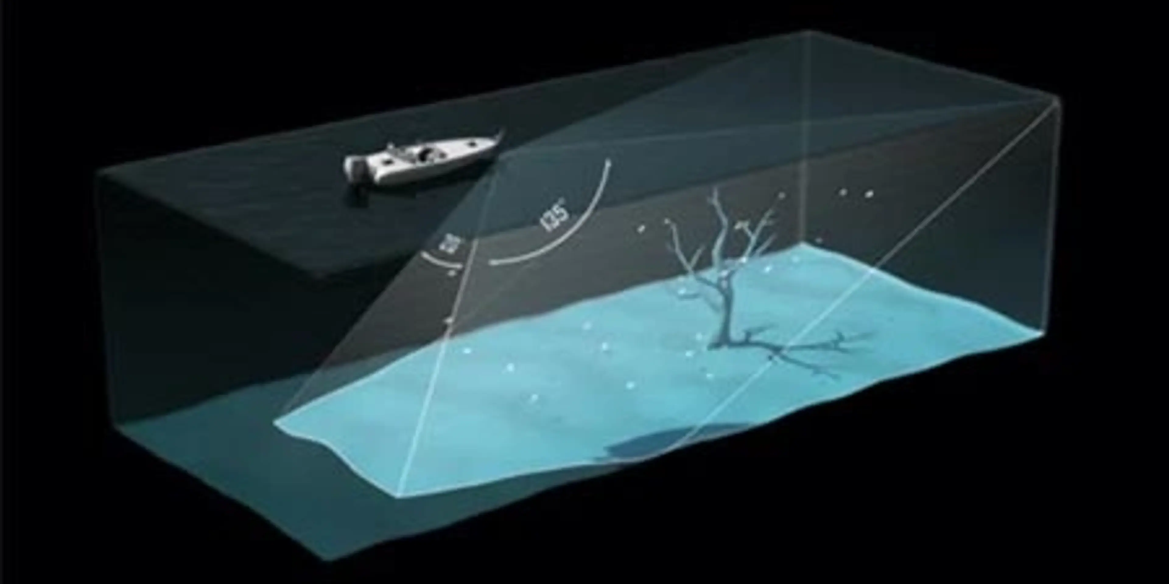 Du kan inte bara se kristallklara bilder runt båten, du kan även se på ett avstånd på upp till 60 meter både framåt och nedåt, även när båten ligger stilla.