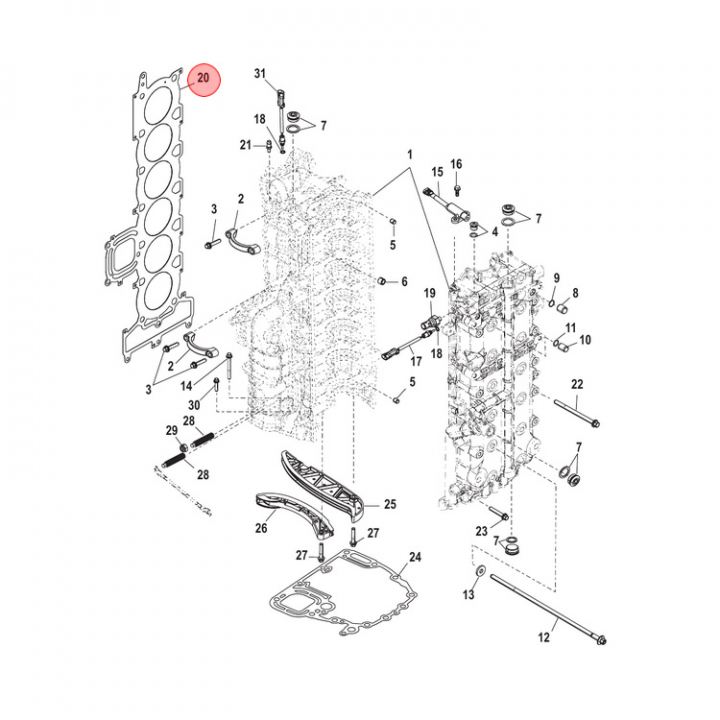 Headpackning (895374T) till blocket på Mercury 350-400 hk utombordare. Titta i din epc för att säkerställa att delen passar just din motor. - Egenskaper