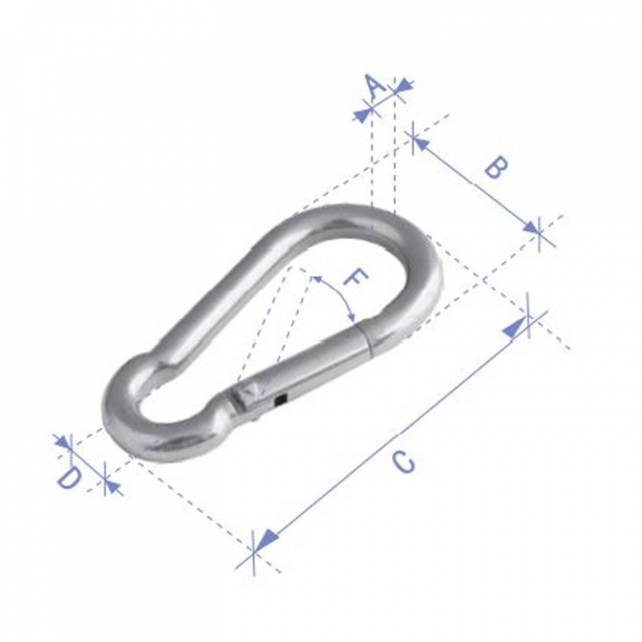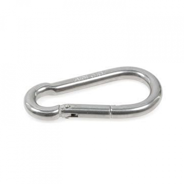 Den traditionella enhandsbetjänta karabinhaken i rostfritt stål. Finns tillgänglig i 7st olika dimensioner. - Egenskaper