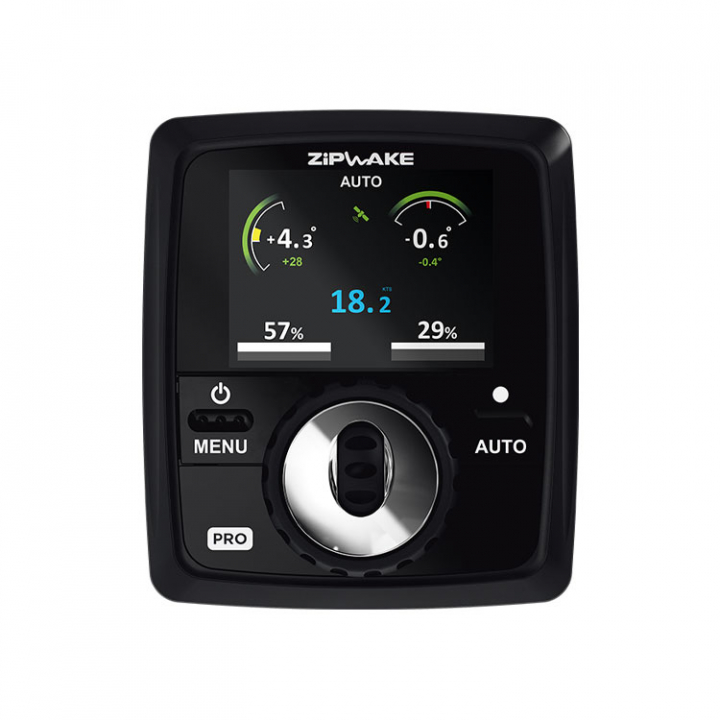 Systemet kan även kopplas till tändningsnyckeln för automatisk strömpåslag. En vattentät USB-port, dold under ett skyddslock, möjliggör framtida mjukvaruuppdateringar – vilket gör Zipwake PRO framtidssäkert.