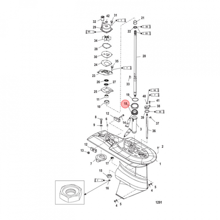 Lager (883047A1) till drivaxeln i växelhuset på Mercury 30-125 hk utombordare. Titta i din epc för att säkerställa att delen passar just din motor. - Egenskaper