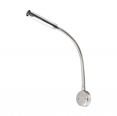 Lampa i spegelpolerat rostfritt stål för väggmontering.
