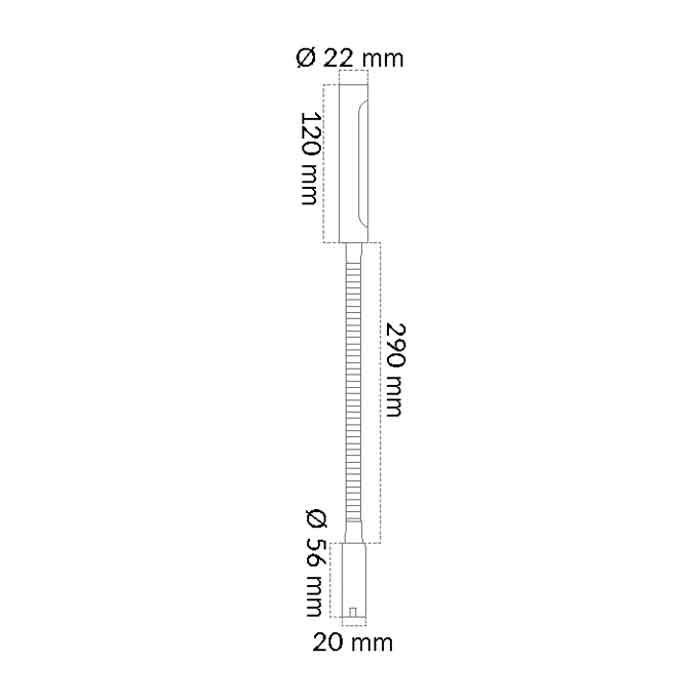 LED-innerlampa och kartlampa med flexibel arm. Tänds och växlar från varmt vitt till rött nattljus med touch-knapp på lamphuvudet. Med USB-laddare.
