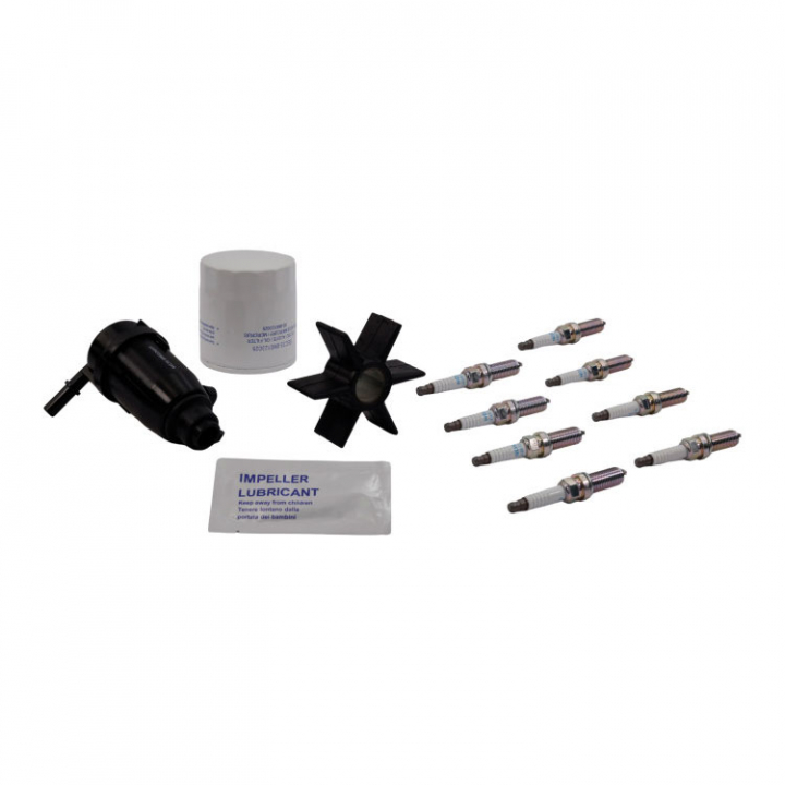 Mercury servicesats till 250, 300 HK V8 (4,6L). Serienr. 250HK=0P409357 - 2B144122. 300HK=2B529482+ Innehåller oljefilter, bränslefilter, tändstift och impeller.