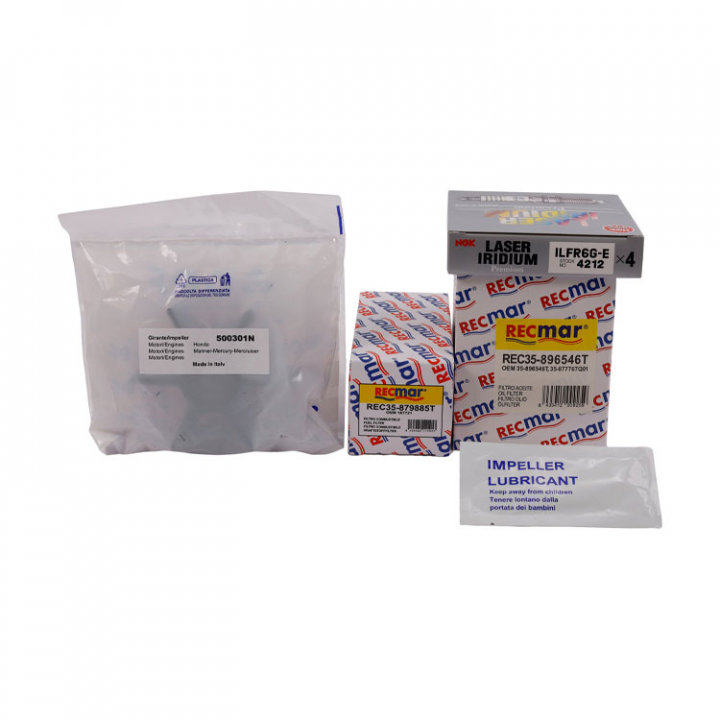Mercury servicesats till Verado 135, 150, 175, 200 HK. Serienr. 135HK Verado= 0P419487 - 0P464487, 0P464488 - 0P514868, 0P514869 - 0P593020. 150HK Verado=0P419487 - 0P593020. 1B227000 - 2B576734. 175HK=0P419487 - 0P593020, 1B517159 - 2B76734. 200HK=0P514869 - 0P593020, 1B517159 - 2B576734. Innehåller oljefilter, bränslefilter, tändstift och impeller.