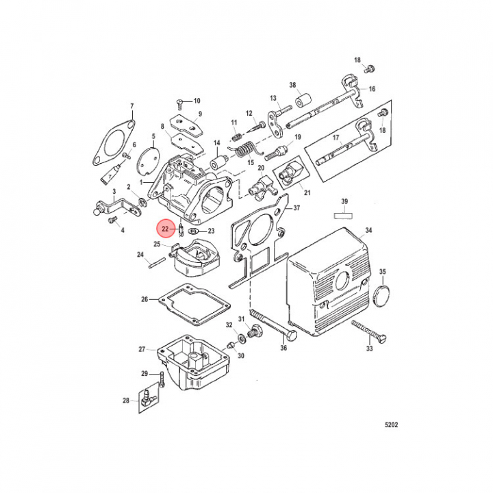 Nålventil (879194011) till förgasaren på Mercury 30-125 hk utombordare. Titta i din epc för att säkerställa att delen passar just din motor.