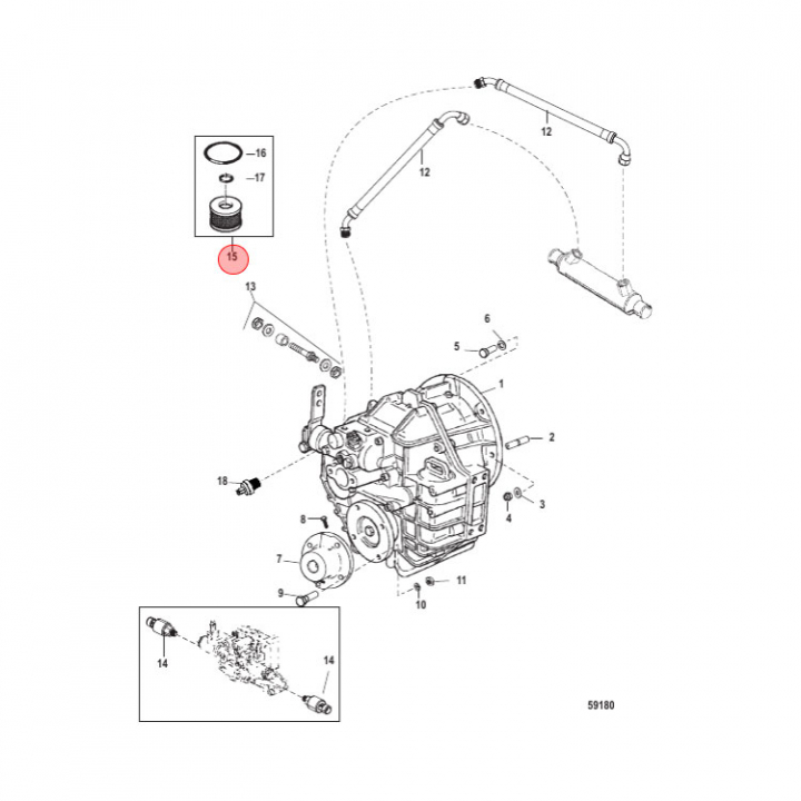 Oljefiltersats (879194241) till Mercruiser motorer. Titta i din epc för att säkerställa att delen passar just din motor. - Egenskaper