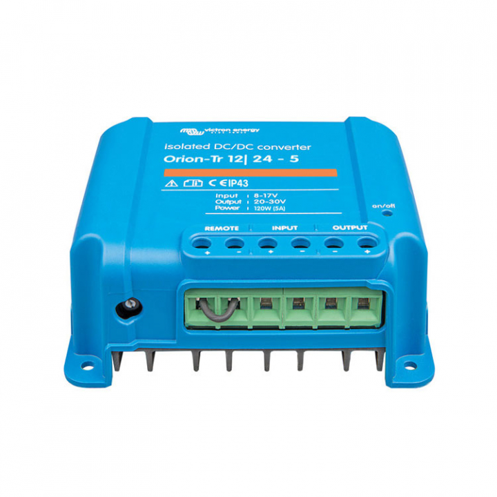 Victron Orion TR galvaniskt omvandlare används även som direkt galvaniskt separerade system: Ingångsspänning 12 eller 24 VDC, utgångsspänning 12 eller 24 VDC finns i 110 och 360 W.