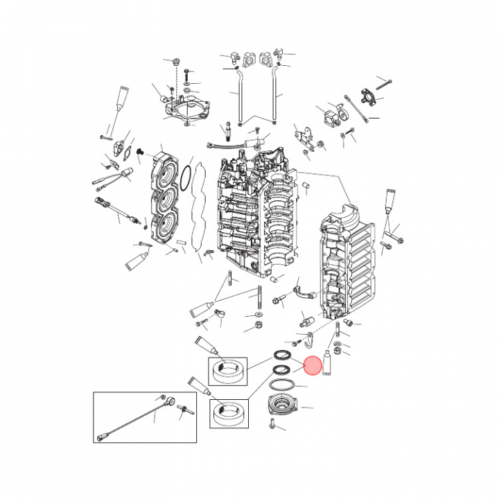 Packbox (8308981) till "end cap assy" på blocket på Mercury/Mariner 135-200, 225-400 hk utombordare. Titta i din epc för att säkerställa att delen passar just din motor.