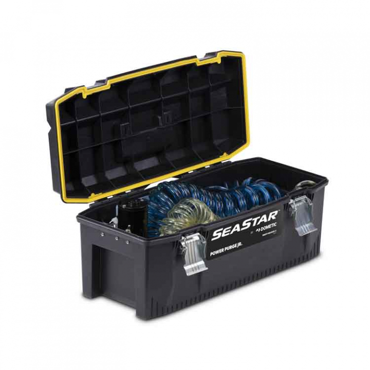 Power Purge JR är det enklaste sättet att fylla och lufta ett SeaStar eller BayStar system. Det får garanterat ut all luft ur systemet och styrningen blir stabil och säker.