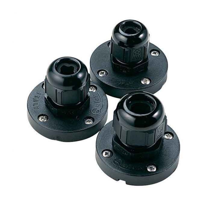 Svart genomföring i slagsäker plast, finns tillgänglig i fyra stycken olika dimensioner och säljes styckvis. - Egenskaper