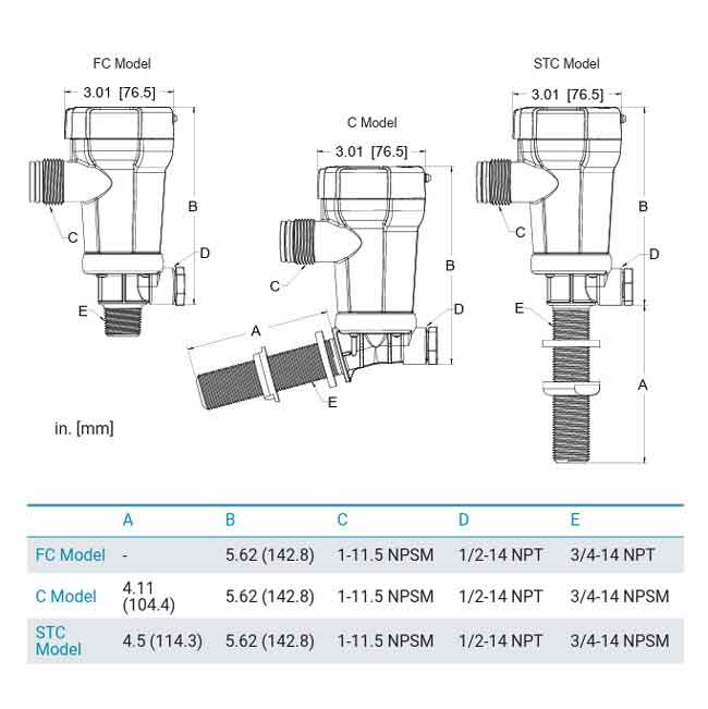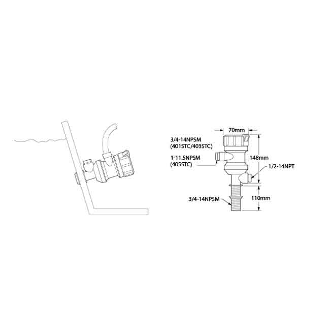 Pumparna har ett rakt 3/4″-14 NPSM plaströr som är 110mm långt för genomförning genom skrov, kräver 25mm håltagning. Rekommendationen är att montera Rule 73 filter för att inte få med skräp in i tanken.