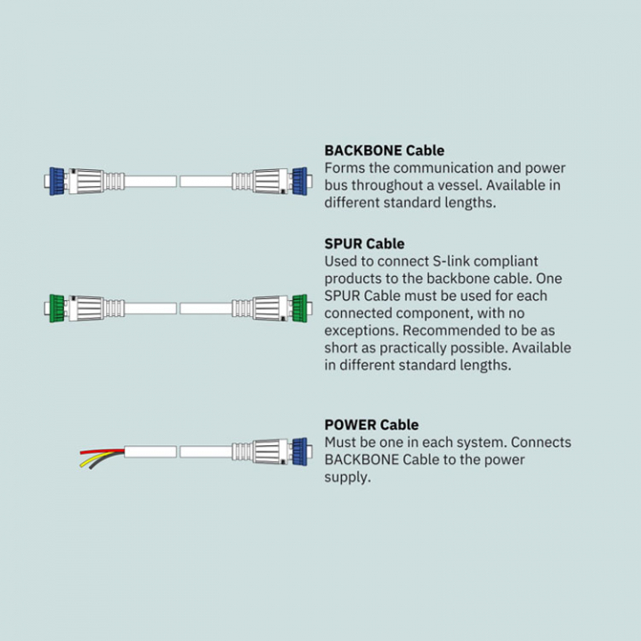 S-link spur power kabel, måste finnas en i varje system. Ansluter Backbone-kabeln till strömförsörjningen.