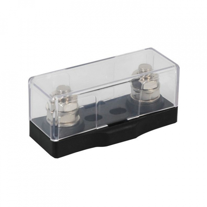 Säkringshållare med hög kapacitet (ANL) Tillverkade av termoplast med avtagbart klart lock. Passar med ANL-säkringar typ 1-14100xx.