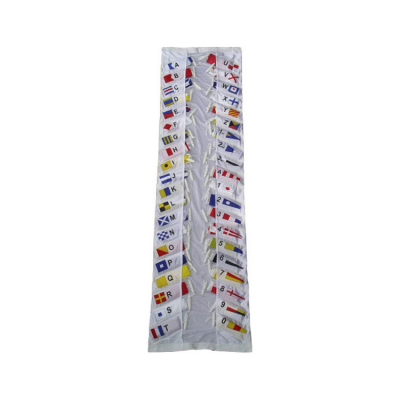 Komplett set, flaggställ, bestående av 40 st. signaler i rikligt markerat och överskådligt fodral (bokstavsflaggor, siffervimplar, svarsvimpel och likhetstecken).