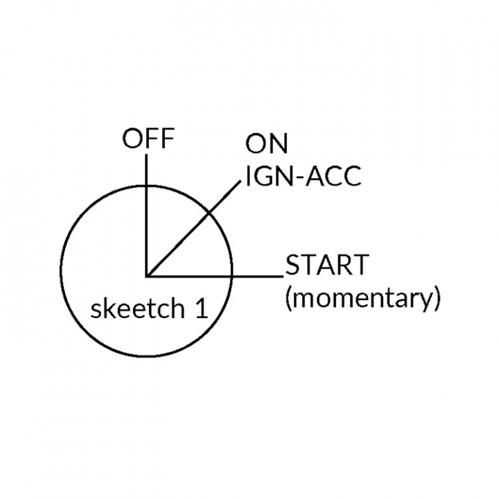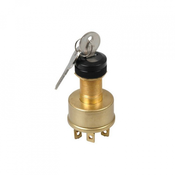 Tändningslås med 3 positioner - OFF / ON / START (momentary). Mässingshus med gummi.