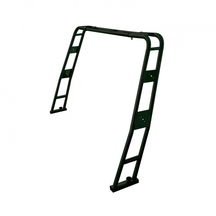 Svart electro coated targabåge i rostfritt stål AISI 316 och justerbar höjd. Monteras med vippbeslag så att targabågen kan fällas ner för att ev. köras under en bro.