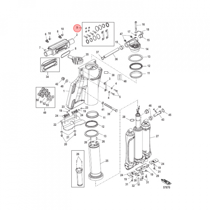 Tätningssats till powertrim på Mercury 200-400 hk Verado utombordare (8M0045604). Titta i din epc för att säkerställa att delen passar just din motor.