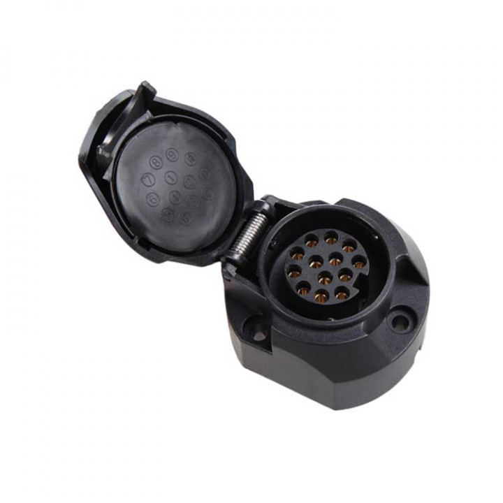 • 13-polig släpvagnskontakt av hög kvalitet. Hon-del.