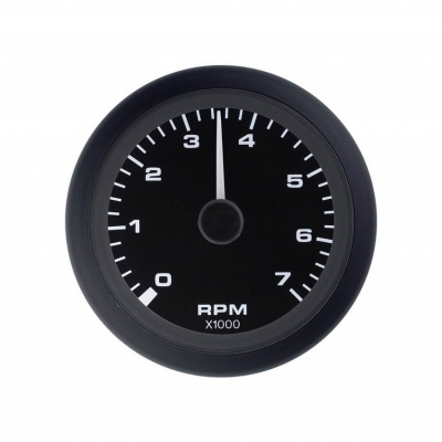 Veethree Premie Pro Line Imfri instrumentserie. Svart ytterring. Vita siffror och vit nivåmarkering på svart botten. Visarnålen är vit med ett svart centrum. Låg profilram som följer instrumentets glas för att eliminera att vatten ligger kvar på kanten. Glaset är repfritt och samtliga instrument levereras med belysning för bästa möjliga nattavläsning. Instrumenten är imfria.