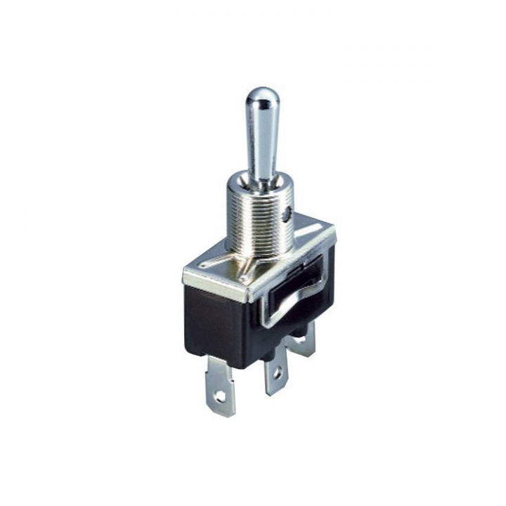 2-polig (on)-off-(on) vippströmbrytare med returfjädring.