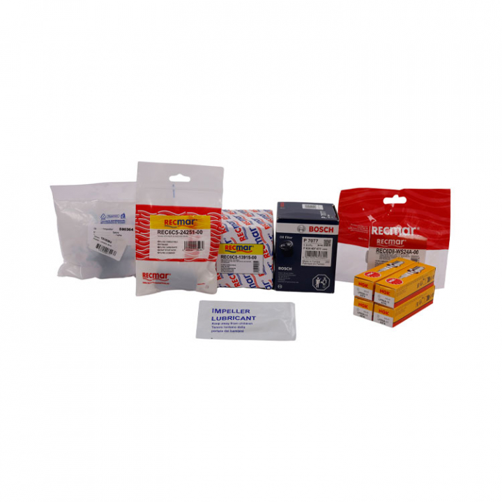 Yamaha servicesats till F80B(2005+), F100D(2005+) Innehåller oljefilter, bränslefilter, tändstift och impeller.