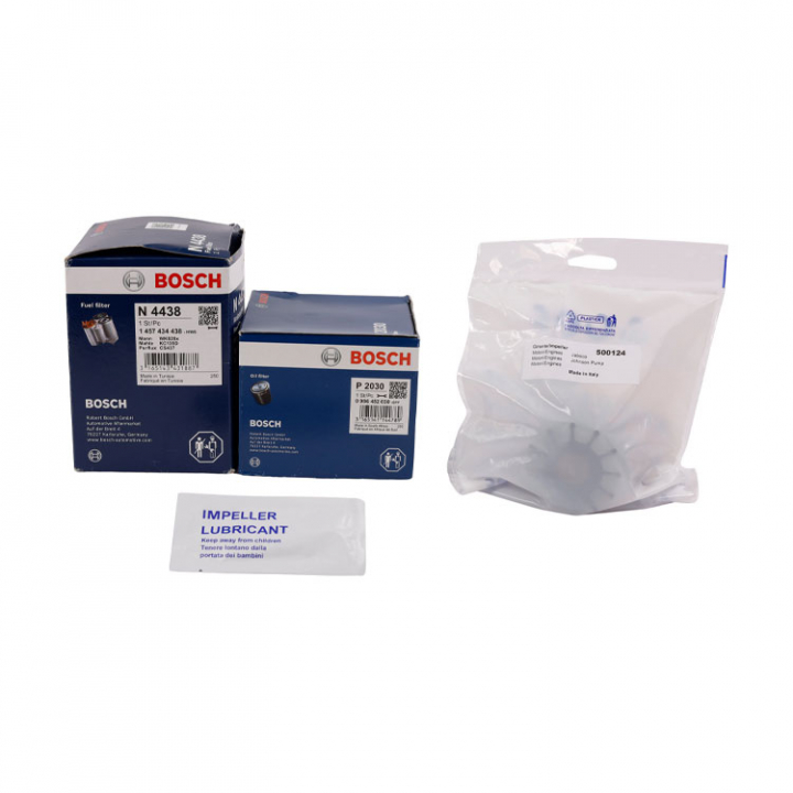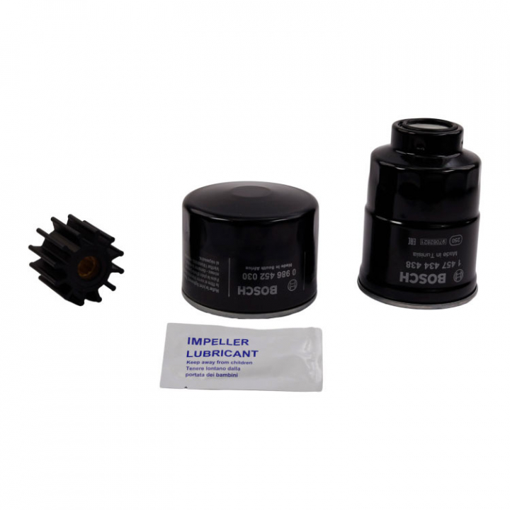 Yanmar servicesats för 6LP, 6LP-DT, 6LP-DTE, 6LP-STE, 6LPA-D, 6LPA-STE, 6LPA-STP. Innehåller oljefilter, bränslefilter och impeller.